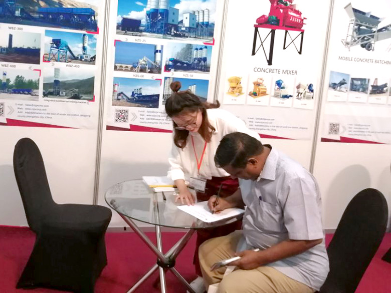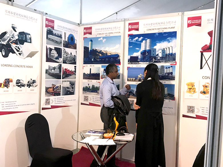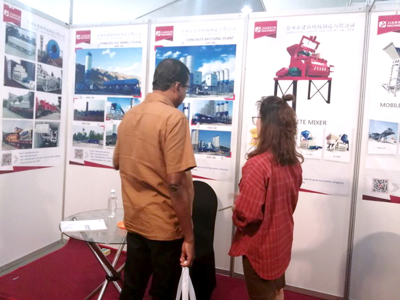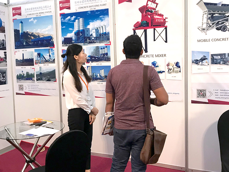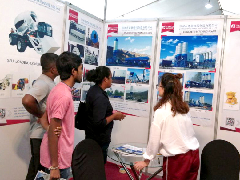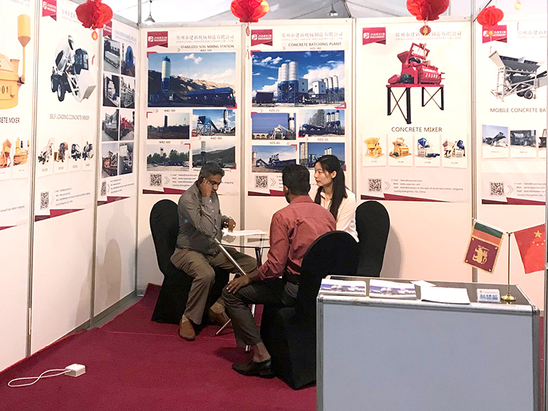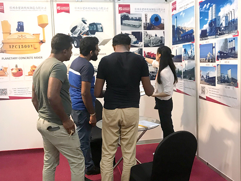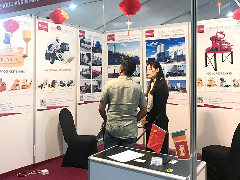 展会上,建新机械研发的JS混凝土搅拌机、YHZS移动式搅拌站、MPC立轴行星式搅拌机、HZS系列混凝土搅拌站、WBC系列稳定土拌合站等产品吸引了络绎不绝的观展者驻足洽谈。接待人员不失时机地向来观展的客户介绍建新机械的技术优势、产品特点、售后服务及销售代理政策,其热情的讲解受到了广大斯里兰卡客户和当地工程机械人士的关注,部分客户当场展开了详细的商谈。